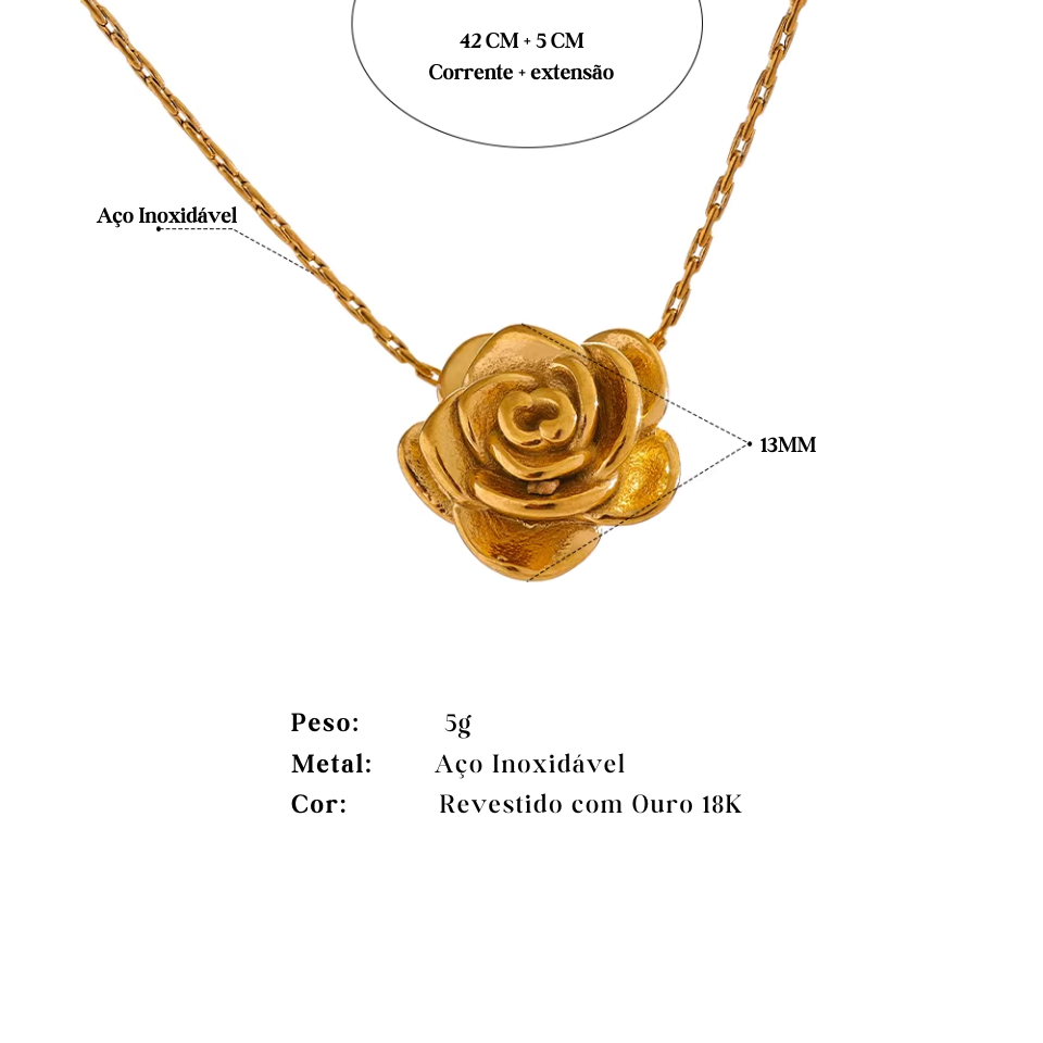 • Design Exclusivo: O pingente em forma de rosa tridimensional representa amor e delicadeza, tornando-se um acessório atemporal.